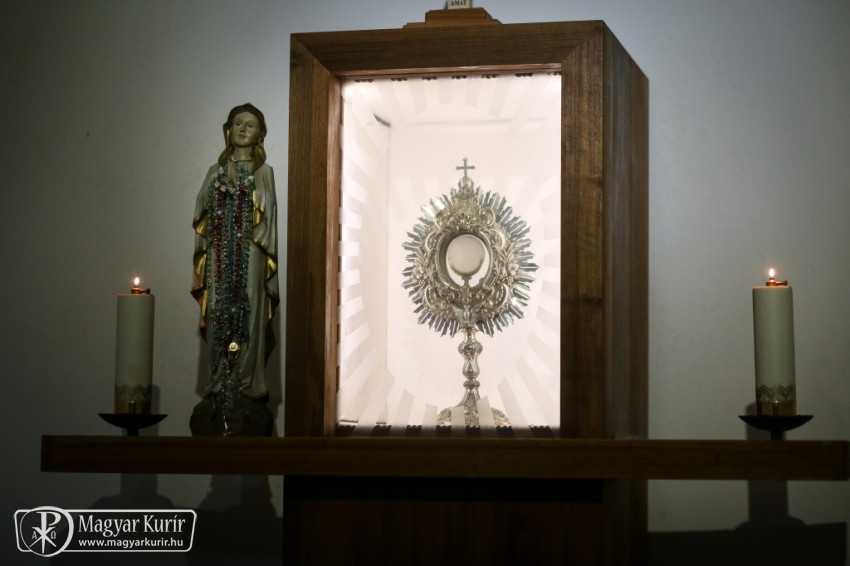 – A katolikusok igazi kincse, az, ami a többi kereszténytől megkülönbözteti őket, az Eucharisztia. Az a hit, hogy Jézus Krisztus testestül-lelkestül, istenségével és emberségével, valóságosan jelen van nemcsak a szentmisében, hanem az Oltáriszentségben is. Ennek a hitnek a lerombolása az utóbbi években rohamléptekben zajlik az egész világon, az utóbbi napokban éppen a német Egyházban. Nevezetesen azzal, hogy igyekeznek engedélyeztetni az elvált újraházasodottak szentáldozáshoz járulását. Több német egyházmegyében éppen napjainkban hagyták jóvá a vegyes házasságban élő nem katolikus házastársak szentáldozáshoz járulását is. Szent II. János Pál pápa az Ecclesia de Eucharistia kezdetű enciklikájával és a Katolikus Egyház Katekizmusának kiadásával is megerősítette az Eucharisztiában való katolikus hitet és Egyházunknak azt a gyakorlatát, hogy a protestáns felekezetekhez tartozó keresztények nem járulhatnak szentáldozáshoz, legfeljebb rendkívüli esetben (gyakorlatilag halálveszély esetén). Annak azonban semmi akadálya, hogy imádják Jézust az Oltáriszentségben. A szentmisében nem vehetik őt magukhoz, mert nem vallják a Katolikus Egyház teljes hitét, és nincsenek kegyelmi állapotban, de az örökimádási kápolnák nyitva állnak előttük, ahogyan bármely vallású ember előtt. Az örökimádási kápolnák védőbástyái lehetnek a katolikus Oltáriszentségbe vetett hitnek, hiszen az ezekbe betérők és itt imádkozók a gyakorlatban tapasztalhatják meg Krisztus valóságos jelenlétének erejét az Eucharisztiában. Nem mindegy, hogy a két év múlva nálunk rendezendő Nemzetközi Eucharisztikus Kongresszus milyen Eucharisztiában való hitet fog közvetíteni: a Katolikus Egyház Oltáriszentségbe vetett 2000 éves hitét vagy egy protestáns hitet. Minél több örökimádási kápolna és templom lesz az országban, és minél több helyen valósul meg a gyakori szentségimádás, annál tökéletesebb lesz az eucharisztikus kongresszusra való készületünk.