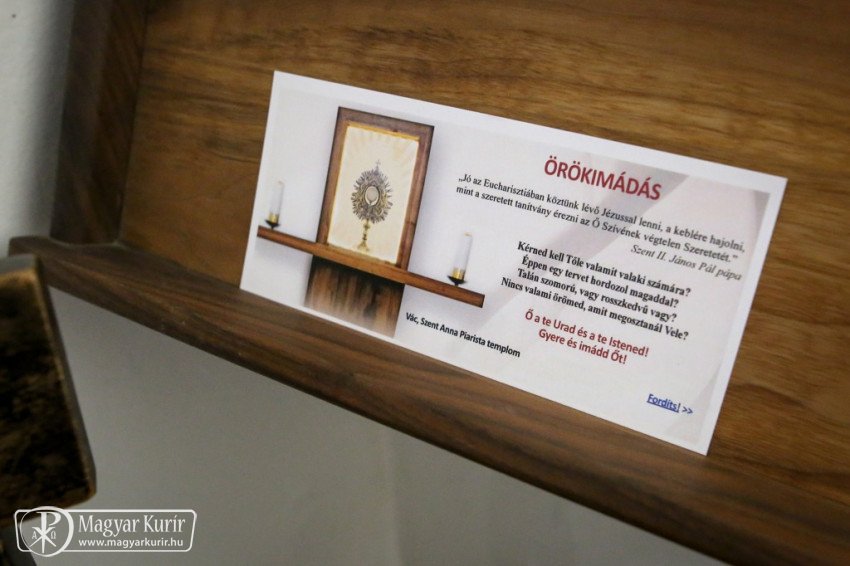 – A nap szinte minden szakában, de különösen munkába menet és munkából jövet egyre többen betérnek a kápolnába, és az óra gazdája mellett majdnem mindig találok ott másokat is. Több olyan emberről is tudok, akinek Vácra költözésében szerepet játszott az is, hogy itt örökimádás van. Egyeseknek annyira az életük részévé vált a szentségimádásban töltött óra, hogy már el sem tudják képzelni az életüket nélküle. De mindig szükség van újabb örökimádókra is, akik vállalnak hetente egy-egy órát, mert többen meghaltak vagy elköltöztek a kezdetek óta, esetleg megváltoztak az életkörülményeik. Budapesten két helyen is elérhető már örökimádás, ezért teljesen érthető módon vannak, akik ott kapcsolódnak be az Oltáriszentség imádásába.