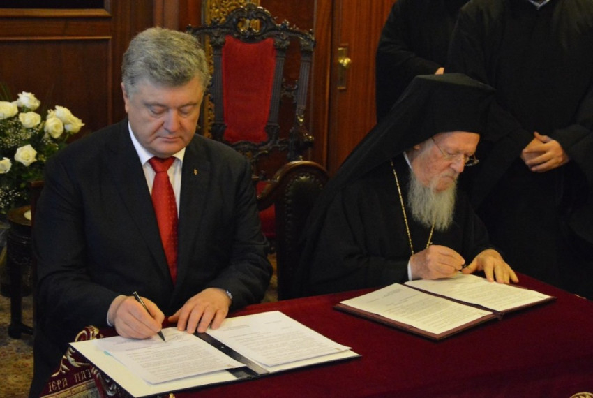 Petro Porosenko elnök Isztambulba látogatott Bartholomaiosz konstantinápolyi pátriárkához, akivel egyezményt írtak alá Ukrajna és a Konstantinápolyi Egyetemes Patriarkátus együttműködéséről a független ukrán ortodox egyház létrehozása érdekében. A konstantinápolyi patriarkátus ezt követően összeállítja az autokefáliáról szóló tomoszt, és átadja a helyi szinódus által választott érseknek.