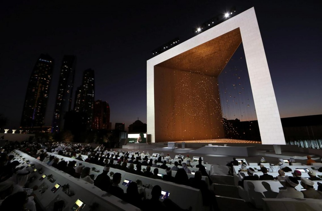 Itt, néhány éven belül, előrelátóan és bölcsen, a sivatagot virágzó és vendégszerető hellyé alakították; a sivatag áthatolhatatlan és megközelíthetetlen akadályból kultúrák és vallások találkozóhelyévé vált. Itt a sivatag kivirágzott, nemcsak néhány napra, hanem sok-sok évre. Ez az ország, ahol a homok és a felhőkarcolók találkoznak, továbbra is fontos útkereszteződés lesz Nyugat és Kelet között, Észak és Dél között, a fejlődés helye, ahol egykor barátságtalan terek sok nemzetből származó embernek adnak munkahelyet.