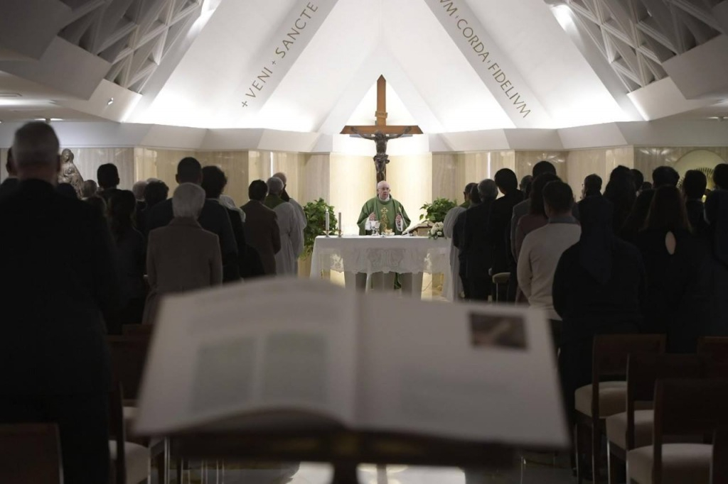 A pápa a szentmise olvasmányához fűzte gondolatait, amely Mózes könyvéből a vízözön történetét beszéli el (Ter 6,5–8;7,1–5.10). „Miután az emberek elszaporodtak a földön, látta az Úr, hogy nagy az ember gonoszsága, és hogy szívének minden gondolata és vágya mindenkor a rosszra irányul. Meg is bánta, hogy embert alkotott a földön, nagyon bánkódott miatta. Azért elhatározta: »Eltörlöm a föld színéről az embert, akit teremtettem; el az embert, a barmot, a csúszómászót és az égi madarat, mert bánom, hogy alkottam őket.« Noé azonban kegyelmet talált az Úr előtt. Miután Noé az Úr parancsára elkészítette a bárkát, azt mondta neki az Úr: »Menj be egész családoddal együtt a bárkába, mert egyedül téged találtalak igaznak ebben a nemzedékben! Végy minden tiszta állatból hetet-hetet, hímet és nőstényt; a nem tiszta állatokból pedig kettőt-kettőt, hímet és nőstényt, hogy maradjon utódjuk az egész földön! Mert még hét nap, és azután negyven nap és negyven éjjel esőt bocsátok a földre, és eltörlök a föld színéről minden élőlényt, amelyet alkottam.« Noé úgy tett, ahogyan az Úr megparancsolta neki. Hét nap elteltével aztán a vízözön hullámai elborították a földet.”