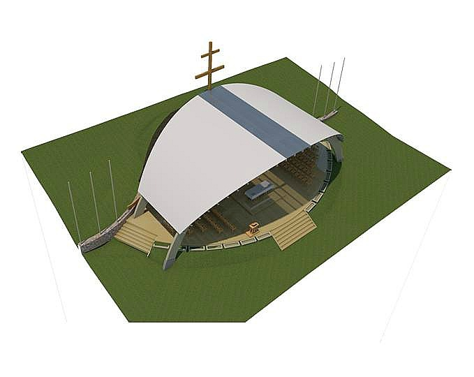 A csíksomlyói kegyhely Facebook-oldalán közzétették a nyeregbeli pódium felújításának látványtervét április 22-én, húsvéthétfő reggelén. A Hármashalom-oltárt Ferenc pápa június eleji látogatására újítják fel és bővítik ki: