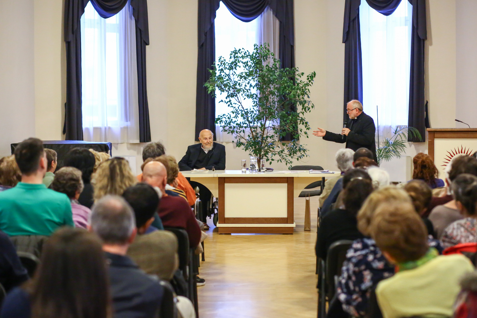 Az est során Péter atya megválaszolta a ház vezetője, Sajgó Szabolcs által írt kérdéseket, és közben életének fontos epizódjaira is kitért. Nagy derűvel, remek humorral vont be világába, ismertette meg hallgatóságát néhány számára oly fontos értékkel: a jóhiszeműséggel, kedvességgel, egyszerűséggel.