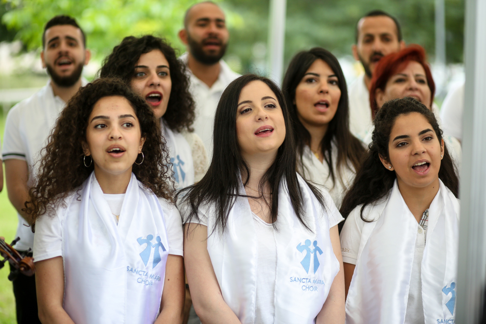 Az ünnepség a magyar himnusz eléneklésével kezdődött, melyet a Sancta Maria nevet viselő libanoni kórus vezetett, amely a hétvégén Máriabesnyőn megrendezett katolikus ifjúsági fesztiválon, a Mladifesten is fellépett.