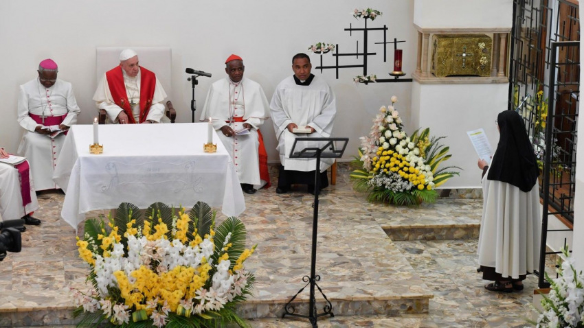 Ferenc pápa szeptember 7-én felkereste Madagaszkár szigetén a fővárosi, antananarivei kármelt és szólt az egybegyűlt száz szemlélődő nővérhez, valamint a kívülálló hetven novíciához, akik nem fértek be a kápolnába. Elkészített beszédét átnyújtotta a perjelnőnek, és ezt követően szívből, spontán szólt hozzájuk. A beszédre Jakubinyi György gyulafehérvári érsek hívta fel a figyelmünket. A sarutlan kármelitáknak mondott spontán beszéd a Szentatya kedves szentjéről, Kis Szent Terézről szól. A pápa szabadon megfogalmazott és elmondott beszédét, melyet Jakubinyi György fordított magyar nyelvre, teljes egészében közöljük.