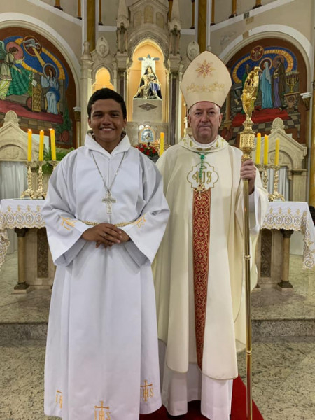 A püspök a Facebook-bejegyzésében megosztott néhány fotót; az egyik azt örökíti meg, amikor Ferenc pápa megöleli a kilencéves Nathan de Britót, a másik képen pedig Nathan már fiatalemberként látható: ferences szerzetesjelöltként áll Joaquim Wladimir Lopes Dias mellett. Nathan a Mato Grosso állambeli Rondonópolisban lépett be a Kisebb Testvérek Rendjébe.