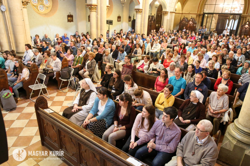 A közösség tagjai által évente megrendezett Rózsaeső imaest a budapesti Örökimádás-templomban (Fotó: Merényi Zita)
