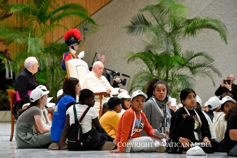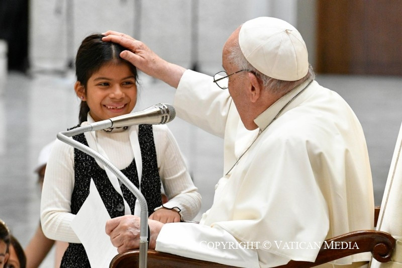 Ferenc pápa: Kedves fiúk és lányok, szép napot kívánok! Isten hozott mindnyájatokat!