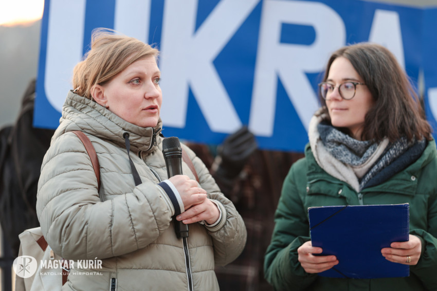 Két ukrán édesanya tanúságtételével kezdődött a megemlékezés. Katyerina Alenyina Kijevből menekült el kislányával a háború kitörésének másnapján. Budapesten, a Máltai Szeretetszolgálat által biztosított szállón lakik, pszichológusként ukrán gyerekek beilleszkedését segíti heti néhány órában. Bár ez nem elég a megélhetésükhöz, hálás, hogy befogadták, békében élhet, és barátokra talált.