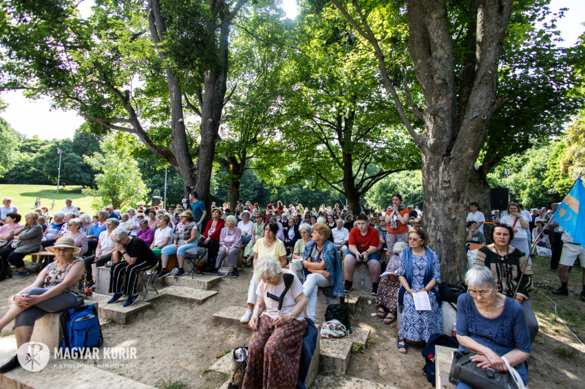 „A mai napon, ezen a szentmisén felajánljuk országunkat, nemzetünket Jézus szentséges szívének, Mária szeplőtelen szívének, hogy ott legyünk biztonságban, a szeretet tűzhelyénél, a két szív közelében, amelyet a szeretet egyesít. Kérjük az irgalmas Jézust, hogy segítsen bennünket. Hiszem azt, hogy a kicsi magból nagy fa nő, a kicsi nemzet is, ha megtér, ha befogadja a Szentlelket, akkor örömmel tudja vinni a feltámadás örömhírét, és reményt tud adni mindenkinek. Most, a remény évében a remény zarándokai vagyunk, június Jézus Szívének hónapja, úgyhogy minden reményünk megvan arra, hogy minden megváltozik, Istennek semmi sem lehetetlen. Kérjük, hogy a szívünkben kezdjük a változtatást, napról napra fogadjuk be a szeretetet és örömet” – fohászkodott a püspök.
