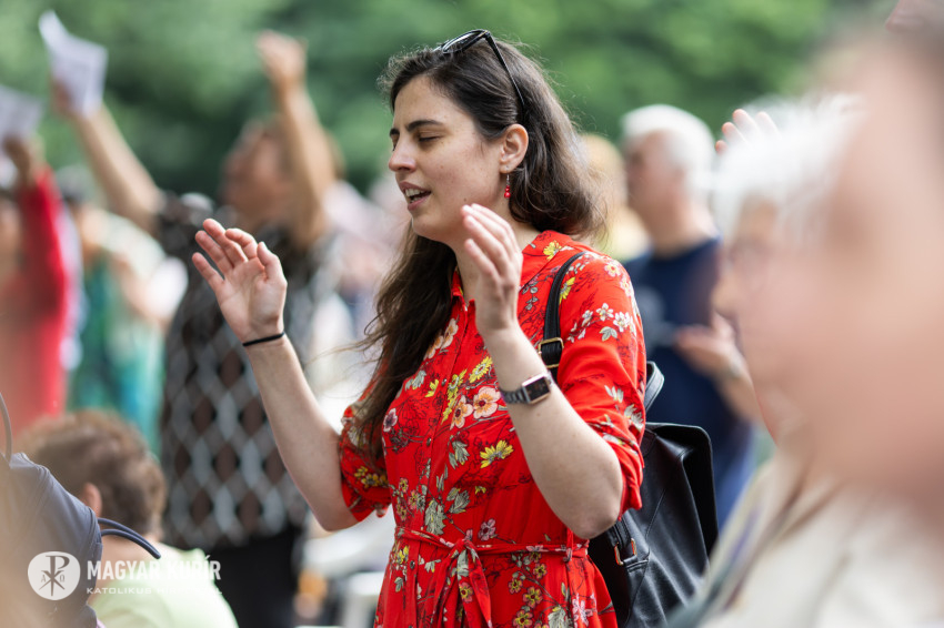A pünkösdi ünnepi rendezvény kezdetén az Emmánuel Közösség zenekara dicsőítő dalokat énekelt. Játékukat meg-megszakították a lélekáradásért könyörgő fohászok: „Küldd el nekünk, Uram, Szentlelkedet, hogy ne legyenek akadályozó erők, akarjunk a te akaratod szerint élni, hogy eljöjjön a te országod, mert te vagy az egyetlen, valódi Isten, Királyok Királya… Jézus, a te neved élet, életet akarsz fakasztani. Kérjük neved erejét saját életünkre és szeretteink életére, ennek a városnak, országnak, Európának, az egész világnak az életére, hogy a megértés, a megbocsátás és a szeretet határozza meg az emberiség mindennapjait… Uram, Jézus, mennyit könyörögtünk, hogy akaratodnak megfelelően egyek legyünk, egy legyen a te nyájad… És most fájdalmasan látjuk, hogy ellenálltunk neked, megosztottak vagyunk, gyakran még mi, testvérek sem állunk szóba egymással. Bocsásd meg nekünk a Katolikus Egyház megosztottságát, a keresztények közötti békétlenséget. Áraszd ránk, Uram, az egység lelkét, add nekünk az ajándékát. Imádkozom az Egyházért, mert hozzátartozunk, nem lehetünk megosztottak, testvérként ellenségek. Imádkozom hazánkért, Magyarország egységéért is, legyen vége a közbeszéd durvaságának, ami már súrolja a háborúság határát. Adj nekünk békét, Uram, fordítsd vissza egymás felé az embereket, a szétszakított családokat. Add, hogy mi keresztények legyünk valódi kovászok, a béke, az egység megteremtői ebben a világban.”