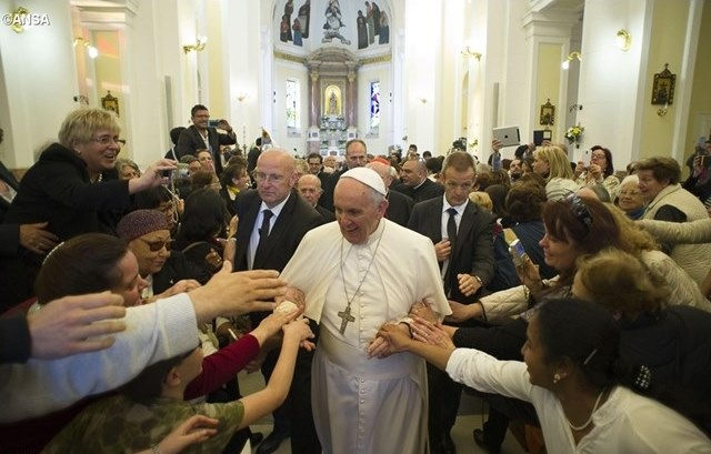 A szentmise bemutatása előtt a pápa rövid időre megállt a Charles de Foucauld lelkiségét követő Jézus Kistestvérei Női Szerzetesközösségnél, amelynek helyi csoportja, a „Vidámpark Testvériség” tagjai lakókocsikban élnek. Ezután találkozott a betegekkel, az idősekkel, a fiatalokkal és a családokkal, akik az elmúlt évben keresztelték meg gyermekeiket.