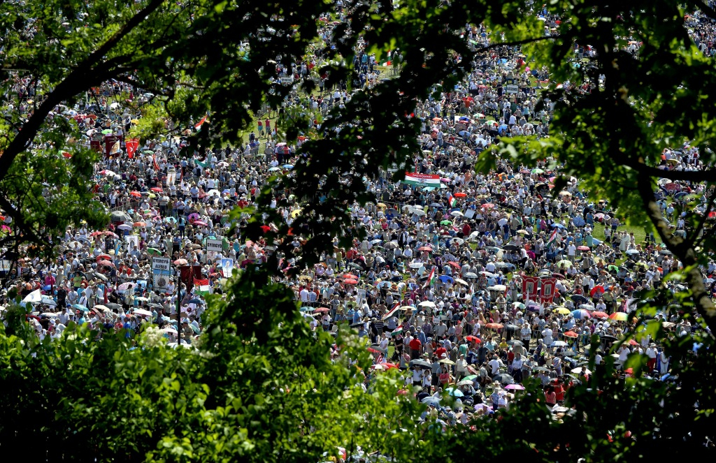 A hagyományosan pünkösdvasárnap előtti szombaton tartott zarándoklatra idén is százezrek érkeztek szerte a világból a csíksomlyói hegynyeregbe.