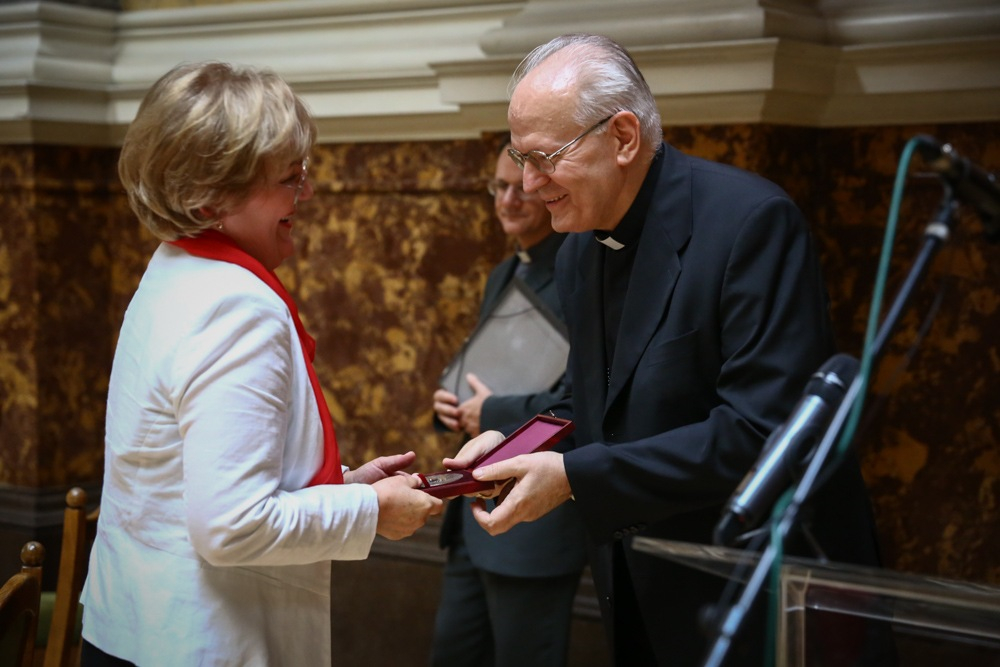 E ponton Erdő Péter áttért a kitüntetésre: „Ki kell mondanom valakinek a nevét, aki a kápolna munkálataiban elévülhetetlen érdemeket szerzett magának: Dragonits Mártáét.”