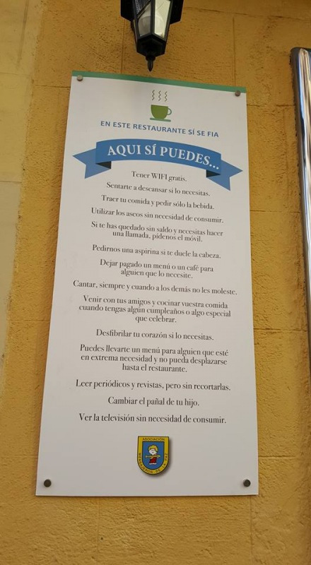 „Azt szeretném, ha ugyanolyan méltósággal étkezhetnének, mint más vendégek – nyilatkozta Ángel atya az amerikai National Public Radiónak. – Emellett ugyanazt a minőséget kapják, kristály-, és nem műanyag poharakban, baráti, beszélgetésre alkalmas légkörben.”