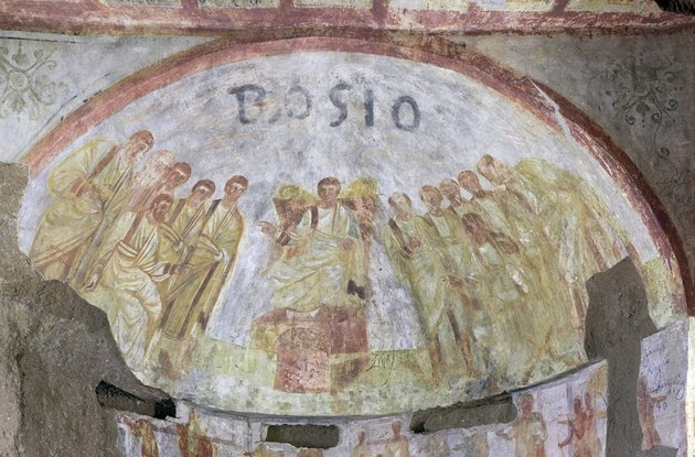 A lézeres tisztítási műveletet követően egy gyönyörű, 5. század eleji freskó bukkant elő, amely Jézus Krisztust és az apostolokat ábrázolja.