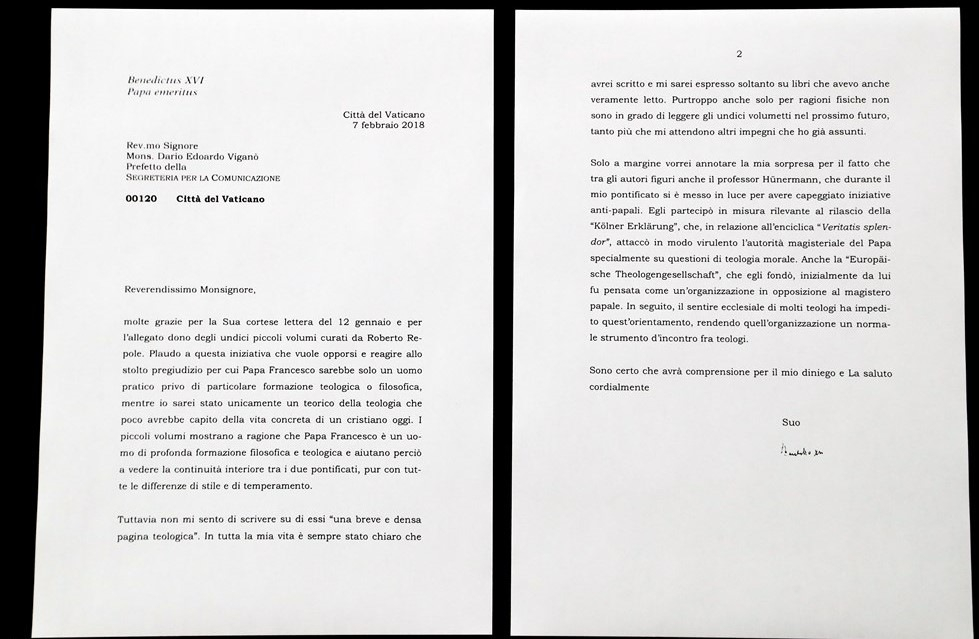 Miután nagy vihart kavart, hogy korábban a Vatikáni Sajtóközpont csak egy részét tette közzé Benedek pápa levelének, amelyet a Ferenc pápa teológiáját bemutató könyvsorozat kapcsán írt, március 17-én nyilvánosságra hozták a levelet teljes terjedelmében.