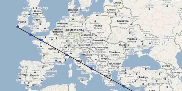 Ha képzeletben összekötjük a hét kolostort, azt látjuk, hogy egy Írország és Izrael között húzódó egyenes vonal mentén találhatók. Véletlen egybeesés lenne? Egymástól nagyon távol fekvő kolostorokról van szó, amelyek mégis tökéletesen egyenes vonalon helyezkednek el.