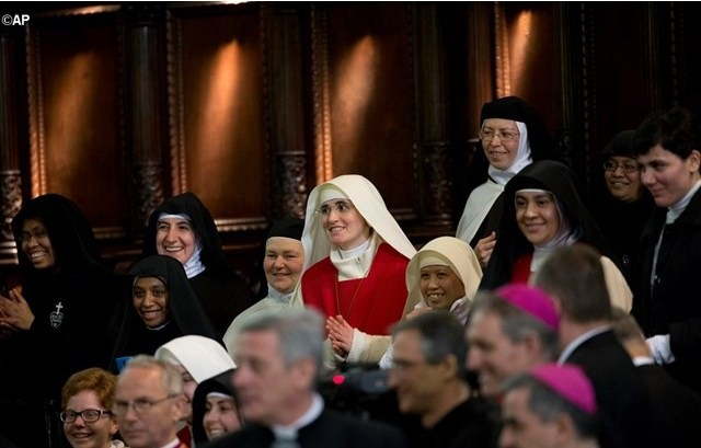 "...Az előbb egy nagyon idős szerzetesnővér „in articulo mortis, a halál pillanatában” áldást kért tőlem. „Miért kéri, kedves nővér?” – kérdeztem tőle. – Azt felelte, hogy éppen most indul misszióba, ahol egy kolostort kell megnyitnia. Íme, igen, ez a szerzetesi élet lelkülete! Ez a tanúságtétel azt mondja, hogy mindig úton vagyunk, Jézus követésében. Papként és a megszentelt élet képviseletében...." Március 21-én, szombaton délután három órakor találkozott Ferenc pápa a nápolyi székesegyházban a város papjaival, szerzeteseivel, szerzetesnőivel. A kész beszédét átadta Sepe bíboros érseknek azzal a meghagyással, hogy majd tegye közzé. A pápa rögtönzött beszédét a Vatikáni Rádió közölte.