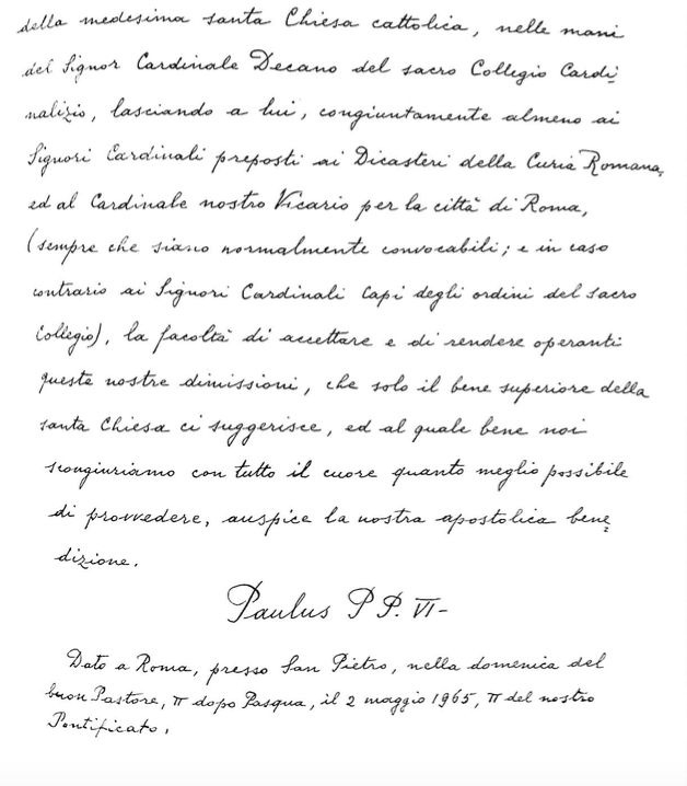 VI. Pál pápa lemondó levelet írt arra az esetre, ha nem tudná ellátni péteri szolgálatát