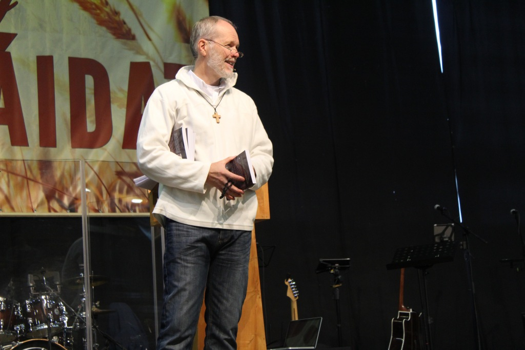 Damian Stayne, a közösség angol alapítója, a hétvége főelőadója az első tanításban arra biztatott minket, hogy legyünk bátrak, mint Dávid Góliáttal szemben. Töltsük meg az elménket Jézus ígéreteivel, merjünk nagyot gondolni, nagy dolgokban hinni, nagy dolgokról beszélni, és meg fogjuk látni, hogy Isten nagy dolgokat visz majd végbe általunk. Ez a bátorság, mondta Damian, Istenen alapul, és azon, amit Ő mondott. Az Istenbe vetett hit átalakít, és képessé tesz az Ő erejének hordozására. A tanítást követően tanúságtételeket hallottunk a közösség Angliában élő tagjaitól, akik olyan esetekről számoltak be, amikor utcai vagy iskolai evangelizáció során fizikai gyógyulások történtek. Különösen megrázó volt az a történet, amikor muszlim nőkért imádkoztak Jézus nevében, akik a gyógyulás után megnyíltak Jézus felé.