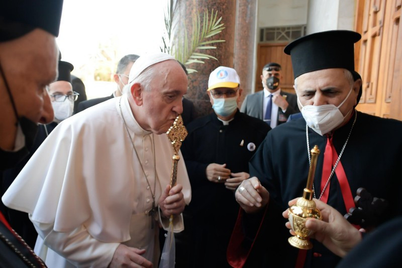 Fivérek és nővérek, a keresztség és a bérmálás, a felszentelés vagy a szerzetesi fogadalomtétel révén az Úrnak vagytok szentelve, és küldetést kaptatok arra, hogy misszionárius tanítványok legyetek ezen a földön, mely oly szorosan kapcsolódik az üdvösség történetéhez. Ehhez a történelemhez tartoztok, hűségesen tanúságot tesztek Isten mindig beteljesedő ígéreteiről, és új jövőt építetek. Bajokban megedződött és vértanúk vére által megerősített tanúságtételetek olyan fény legyen, amely ragyog Irakban és azon túl is, hogy hirdesse az Úr nagyságát, és megörvendeztesse e nép lelkét Üdvözítő Istenünkben (vö. Lk 1,46–47).