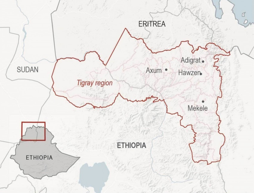 Április 26-a óta Abij Ahmed elnök kormánya elkötelezte magát az eritreai csapatok kivonására, de etióp katonának álcázva az eritreai katonák azóta is jelen vannak, és sorra feltartóztatnak minden humanitárius segítséget. A CNN egyik autójának sikerült áthatolnia az elzáráson, és számos jelenetet filmre vett. Az axumi kórházban alultáplált gyerekekkel találkoztak, és megtudták, hogy vidéken éhínség van, menekülnek az emberek. A felvételek tanúsítják, hogy az eritreai katonák minden teherautót kifosztanak. Kisajátították az axumi, vagyis az egyetlen működő kórházat is: sebesült társaikat viszik oda; fenyegetik az orvosokat, akik el akarják látni a katonák áldozatait. Előfordult, hogy egy megerőszakolt, sebesült asszonynak maguk az orvosok adtak vért.