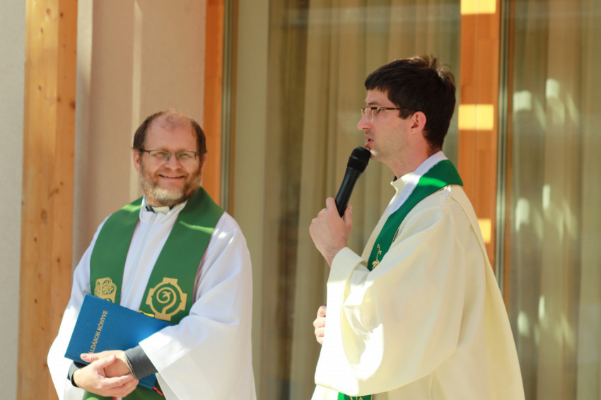 A program nyitásaként Nobilis Márió, a Sapientia Szerzetesi Hittudományi Főiskola tanszékvezetője, a Naphimnusz Teremtésvédelmi Egyesület alapító tagja, illetve a Laudato si’ magyar fordításának szakmai lektora mondott köszöntőt, majd megáldotta a plébániakertbe nagypénteken elültetett öt új facsemetét, a régi plébániaépületben újonnan kialakított – a jövőben előadásoknak, gyakorlati foglalkozásoknak helyet adó – teremtésvédelmi műhelyt, illetve azt a táblát, amelyet mintegy mementóként állítottak a plébánia- és templomkert bejáratához, s amelyen a pápai teremtésvédelmi enciklikából olvashatók szemelvények.