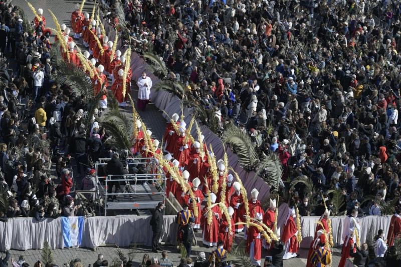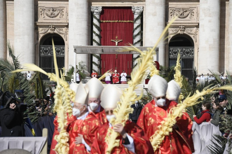 Április 10-én délelőtt a Szentatya a Szent Péter téren mutatta be a pálmaágakkal megrendezett bevonulási körmenet miatt különösen ünnepélyes virágvasárnapi szentmisét, mintegy hatvanötezer hívő jelenlétében. A járványhelyzet miatt két év után ez volt az első alkalom, hogy Ferenc pápa ismét szentmisét ünnepelt a Szent Péter téren összesereglett hívekkel. A Szentatya beszédében azt kérte, hogy tanuljuk el Jézus magatartását, és imádkozzunk azokért, akik erőszakosan bánnak másokkal. Ferenc pápa teljes homíliájának fordítását közreadjuk.