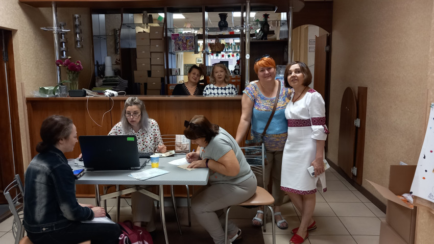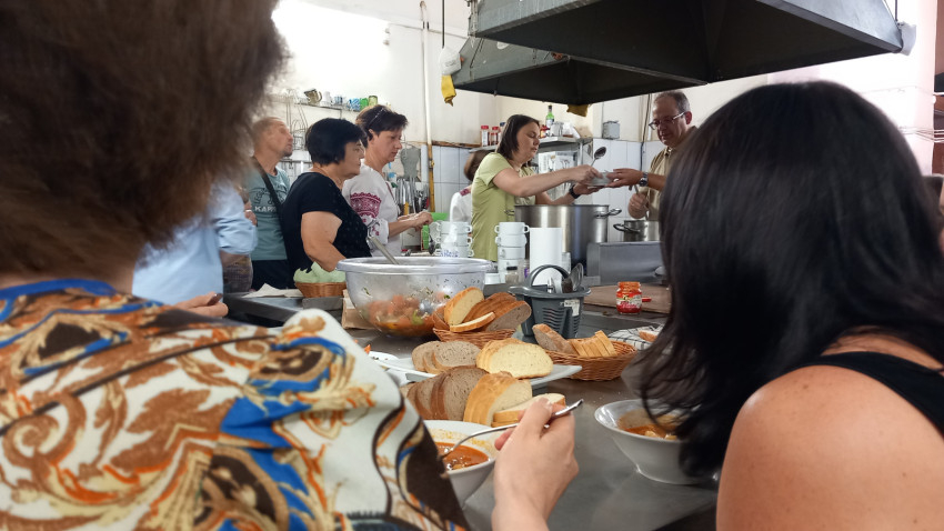 Szombaton – ami ünnepnap, a függetlenség napja volt Ukrajnában, ezért vannak sokan ünneplőben, népviseletben a fotókon – nekik főzünk gulyást nagy kondérban, miközben ők az irodákban fogadják a rászorulókat. A közösség minden héten háromszáz menekültnek ad segélyt, a regisztráció nyitott, bárki jelentkezhet. Aznap nem menekültek érkeznek, hanem nevelőszülős családok. Idővel sok menekült már berendezkedett, munkát talált, a közösség pedig igyekszik kiterjeszteni a segítséget a városlakókra is. Egyre nagyobb a szegénység, és mivel egymillió lakosú városról van szó, az önkormányzatot kérték, hogy jelöljék ki a leginkább rászorulókat, így kerültek a látóterükbe ezek a családok. Különösen nehéz helyzetben vannak a családotthonok, esetükben a saját gyerekek mellett nyolc-tíz nevelt gyereket kellett kimenekíteniük a keleti régiókból. Egy nevelőanya elmeséli, hogy otthon, Mikolajivban nagy gazdaságuk volt, mindent megtermeltek maguknak, itt pedig egy kis lakásban élnek, miközben befogadtak két újabb gyermeket is egy kényszerűségből feloszlatott zaporizzsjai intézetből.
