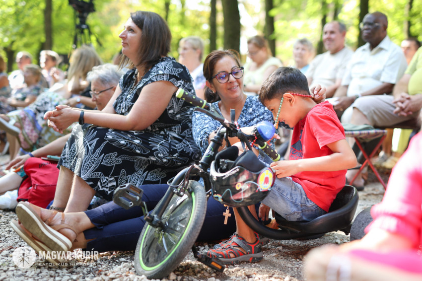 Így folytatta: amikor Erzsébet asszony elvesztette a hitét, Isten nem azt mondta neki: te gonosz asszony, a pokolra jutsz, ehelyett „visszaudvarolta” őt, Jézushoz, szelíd, suttogó hangon: „Gyere, Erzsébet, szeretlek!” Ez csoda, Isten a szeretet Istene. Ő nekünk ajándékozta a Szeretetlángot, hogy rádöbbentsen bennünket: Isten nem halott, Ő élő tűz, és azt mondja nekünk: „Nyissátok meg a szíveteket, és én belétek helyezem ezt a lángot, már ma! Isten élő, szerető Isten, ott szeretne élni a szívünkben, élő Szeretetlángként.” Jézus azt mondta: azért jöttem, hogy örömötök legyen. Ő jobban vágyik ránk, mint mi őrá. „Kérjük a Szűzanyát: segíts, hogy szeressem Istent, olyan vágyakozással, odaadással, ahogyan te szeretted őt!”