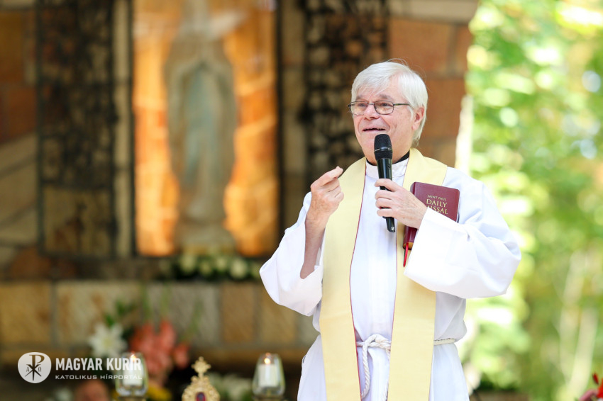 A szentbeszédet Jim Blount exorcista, a Szeretetláng Mozgalom nemzetközileg ismert misszionáriusa mondta. „Szeretlek, Jézus, szeretlek, Mária, Alleluja!” – kezdte homíliáját az amerikai lelkipásztor, majd elimádkoztatta a hívőkkel az Üdvözlégy Máriát.