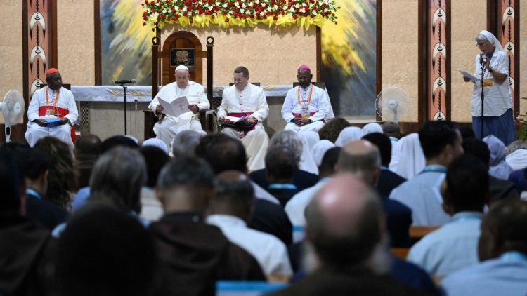 Szeptember 7-én este Port Moresbyben, Pápua Új-Guinea fővárosában, a Szentatya a Pápua Új-Guinea-i és a Salamon-szigetek-i püspökökkel, papokkal, diakónusokkal, megszentelt személyekkel, papnövendékekkel és katekétákkal találkozott a Mária, Keresztények Segítsége-kegyhelyen. Az alábbiakban a Szentatya teljes beszédének fordítását közöljük.