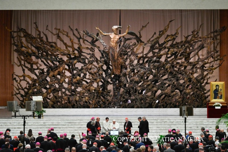 Amikor úgy döntöttem, hogy e tizenhatodik közgyűlés teljes jogú tagjainak jelentős számú világi hívőt és megszentelt személyt (férfiakat és nőket), diakónusokat és papokat is meghívok, továbbfejlesztve azt, amit részben már az előző közgyűléseken is megvalósítottunk, ezt a II. Vatikáni Ökumenikus Zsinat által a püspöki szolgálat gyakorlásáról kifejtett felfogással összhangban tettem: