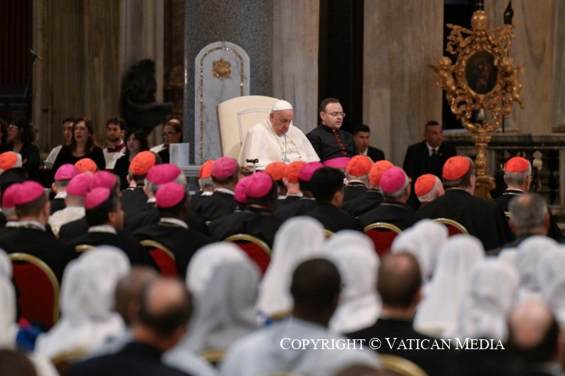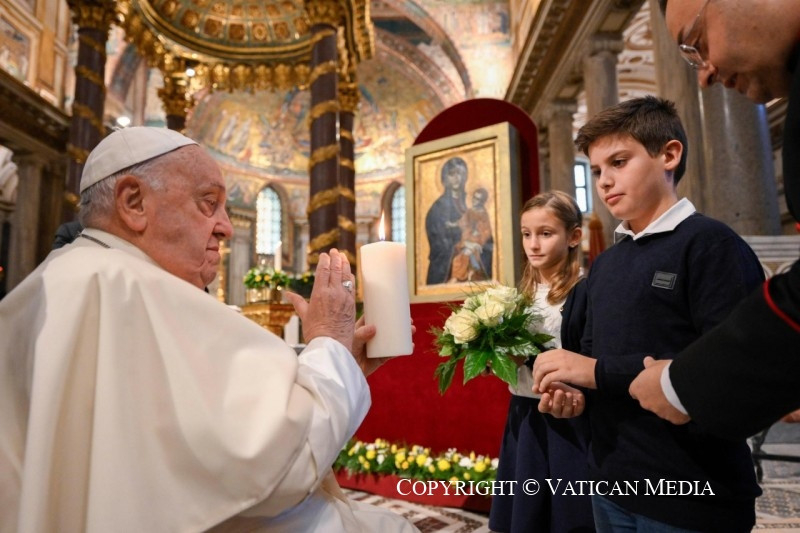 A Szentatya vezette október 6-án tizenhét órakor a rózsafüzér elimádkozását a béke ajándékáért a Santa Maria Maggiore-bazilikában. A közös imán részt vett a püspöki szinódus összes tagja és számos hívő a római egyházmegyéből. A pápa a Salus Populi Romani ikon előtt olvasta fel fohászát a békéért. Az alábbiakban Ferenc pápa teljes imájának fordítását közreadjuk.