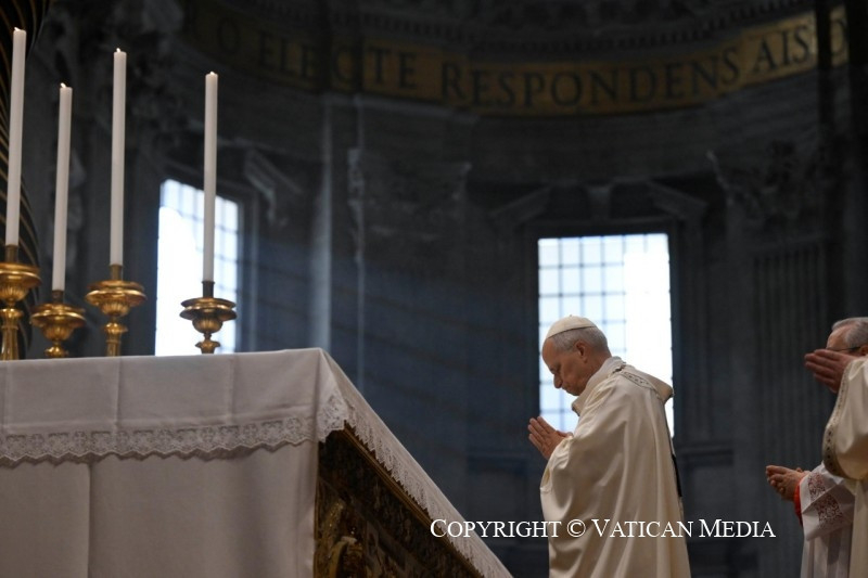 Január elsején délelőtt a Szentatya a vatikáni Szent Péter-bazilikában újévi szentmisét mondott karácsony nyolcadában, a Boldogságos Szűz Máriának, Isten anyjának főünnepén, a béke 59. világnapján, melyre üzenetet is küldött; ennek témája: Egy fegyvertelen és lefegyverző béke felé. Az alábbiakban XIV. Leó pápa teljes szentbeszédének fordítását közreadjuk.