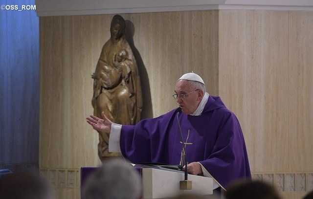 Minden onnét indul – magyarázta Ferenc pápa, – hogyan mutatkozunk Isten színe előtt, hogy a bocsánatát kérjük. A példát a napi olvasmány mutatja, ahogy a tüzes kemencébe vetett Azarja próféta imádkozik, népe bűnének bocsánatáért fohászkodva. A nép szenved, mert elhagyta az Úr törvényeit. Azarja nem tiltakozik, nem panaszkodik Isten színe előtt a sok szenvedés miatt, hanem elismeri a nép vétkeit, és megtér.