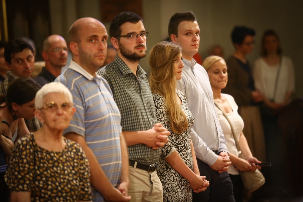 Nem igaz az, hogy minden házasság szétválik! – sorolta tovább, hogy mit kell jó hírként észre vennünk. Milyen jó, hogy van olyan bácsi, aki a halálos ágyán, ha megkérdezi tőle mint gyóntató: Nyomja-e valami a lelkét?, azt válaszolja: semmi, de ha lehetne, elmennék arra a helyre, ahol megismertem a feleségemet, és megcsókolnám a földet. Vegyük észre, hogy sokkal több pozitív hír van, mint gyászhír – erősítette az értékek és a jó hírek keresésére a híveket Böjte Csaba.