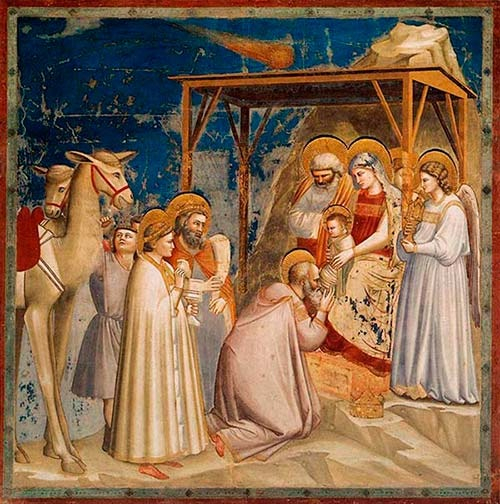 A keleti egyházakban sokáig egyet jelentett a születés és az epifánia ünnepe. Jézus születése által Isten megjelent a világban. A napkeleti bölcsek által a pogányokhoz is eljutott a Megváltó születésének örömhíre. Máté evangéliuma (Mt 2,1–12) szerint a Háromkirályok a betlehemi csillag által vezéreltetve jöttek keletről Júdeába, hogy az újszülött kis Jézusnak kifejezzék hódolatukat: aranyat ajándékoztak a Királynak, tömjént az Istennek és mirhát az Embernek. Az evangélium mágusnak nevezi őket, de nevüket nem említi. A hagyomány szerint hárman voltak, a 8. században élt Beda Venerabilis nevüket is említi: Caspar, Melchior, Balthasar – azaz Gáspár, Menyhért, Boldizsár.